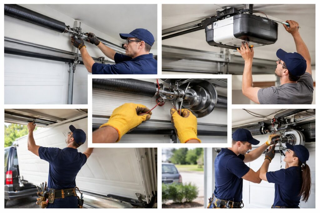 The cost depends on the issue, such as spring replacement, cable repair, opener problems, or panel damage. We offer transparent pricing and free quotes after diagnosing the problem.